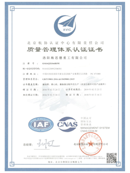 通過ISO9001質(zhì)量管理體系認證并取得證書。